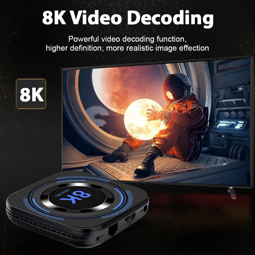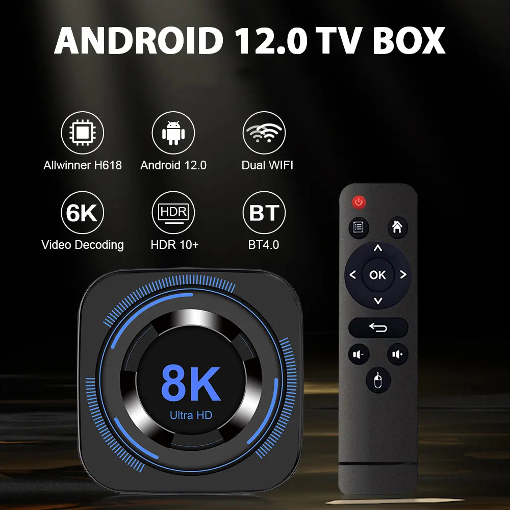 Chemicals Of High Concern: None Remote Control Included: Yes Category: Set-Top Box System Upgrade: Supported Power Supply: Dc Standard Power Adapter: Yes Weight: 0.4 Kg Ethernet: 100m Wireless: Supported Bluetooth: Supported Remote Control: Standard Material:ABS Color:Black Size:12x12cm..